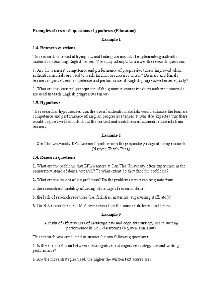 Research Hypothesis Examples In Education : Research Hypothesis Ppt / In many cases, researchers might draw a hypothesis from a specific theory or build on previous research.. A research hypothesis is the statement created by researchers when they speculate upon the outcome of a research or experiment. After a problem is identified, the scientist would typically conduct some research about the problem and then make a hypothesis about what will happen during his or her experiment. Maximum reflex efficiency is achieved after eight hours of sleep. Null hypotheses are used in the sciences. A hypothesis is a prediction of the outcome of a test.